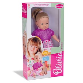 Boneca Olivia Bambola – Fala Frases e Vem com Jogo da Memória A Boneca Olivia da marca Bambola é pura diversão e carinho para as crianças! Com corpo de pano macio e feições delicadas, ela encanta pelo realismo e ainda surpreende ao falar diversas frases, tornando a brincadeira muito mais interativa. Para completar a diversão, a Olivia acompanha uma cartelinha com figuras de bichinhos, perfeita para brincar de jogo da memória, estimulando a imaginação, a fala e o aprendizado de forma lúdica. Características: - Ref.: 687 - Marca: Bambola - Modelo: Olívia Frases - Material: Vinil, Tecidos e Polipropileno - Material Corpo: Pano macio - Acompanha cartelinha com figuras de bichinho - Fala diversas frases - Tamanho ideal para brincadeiras de cuidado - Código de barras (EAN): 7899871706875 - Altura Aproximada: 42 cm - Certificação: 7789-2023-BRI-1M - Recomendado para crianças a partir de 3 anos Conteúdo da Embalagem: - 1 Boneca - 1 cartelinha com figuras de bichinho Uma boneca que une carinho, aprendizado e diversão, ideal para presentear e encantar!