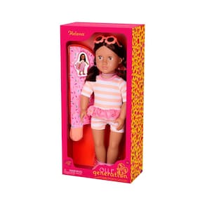A diversão está garantida com a Boneca Our Generation Helena! Pronta para um dia de sol e muitas aventuras à beira da piscina, Helena vem com um look de verão encantador e acessórios que tornam a brincadeira ainda mais realista. Com 46 cm de altura, olhos castanhos que abrem e fecham, sardinhas delicadas e longos cabelos castanhos escuros para pentear de diferentes formas, ela é perfeita para inspirar momentos de imaginação e criatividade.