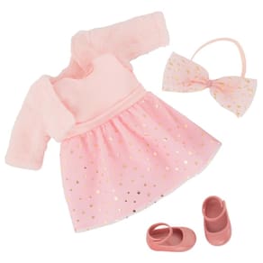 A Boneca Our Generation Miranda chegou para brilhar em qualquer ocasião! Com 46 centímetros de altura, cabelos loiros lisos e olhos azuis expressivos, Miranda é puro charme. Seu look é digno de uma estrela: ela veste um delicado vestido rosa com detalhes de estrelas douradas, uma jaqueta de pelúcia super fofa e macia, uma faixa de cabelo com laço e sapatos combinando um visual perfeito para festas, passeios e muitas aventuras encantadas!