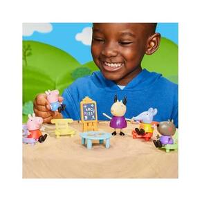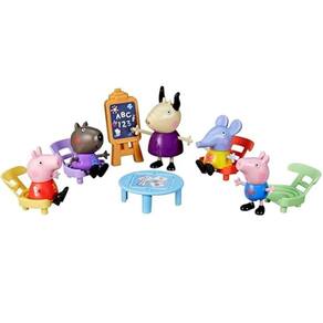 Crianças e fãs da Peppa Pig podem brincar e aprender com a Peppa Este brinquedo Peppa Pig vem com 5 figuras e 6 acessórios para as crianças se imaginarem na escola com a Peppa e seus amigos. Este kit inclui 5 figuras de 7,5 cm dos personagens da série animada como Elefanta Emília, Danny Cão, George Pig, Madame Gazela e Peppa Pig. Vem com 4 cadeiras para as figuras sentar, 1 mesa giratória e 1 cavalete para pequenas lições. É um excelente presente para meninos e meninas a partir dos 3 anos fãs da Peppa.