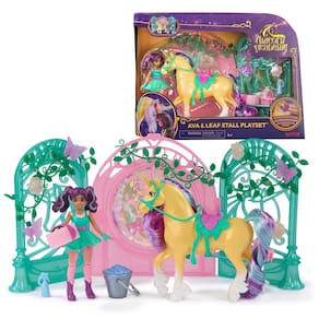 Unicorn Academy, Brinquedo de boneca Ava e folha que muda de cor com 15 acessórios, bonecas e brinquedos de unicórnio para meninas a partir de 4 anos - Suporte de unicórnio e brinquedo de boneca: baseado no popular programa Netflix e livros infantis mais vendidos, este conjunto detalhado inclui Ava de 11,4 cm, folha de mudança de cor de 12,7 cm e 15 acessórios - Brinquedo de unicórnio que muda de cor: Recrie Leaf ganhando seus poderes – mergulhe a esponja em água gelada e aplique em seu corpo para revelar magicamente as marcas Plant Magic. A sela e o freio da Leaf também são removíveis para brincar de conta adicional - 15 acessórios para bonecas: decore a barraca com borboletas, flores e videiras. Adicione à sua narrativa com um frasco de spray que a Ava pode segurar, a esponja, o balde de frutas celeste para a folha para lanche e escova para a crina e cauda sedosas da Leaf - Colecione todos: construa sua coleção de bonecas e acessórios Unicorn Academy com todos os conjuntos de cavaleiros e unicórnios (brinquedos femininos vendidos separadamente). Presentes divertidos de unicórnio, presentes de aniversário ou presentes para qualquer ocasião - ENCANTANTES Cesto de páscoa: Encha sua cesta de Páscoa com bonecas, unicórnios, bichos de pelúcia e muito mais. Brinquedos de unicórnio emocionantes para meninas de 4 a 6 anos ou mais - Inclui: 1 brinquedo, 1 boneca, 1 unicórnio, 1 sela removível, 1 freio removível, 15 acessórios - Coberto pelo compromisso Spin Master Care. Veja abaixo os detalhes completos