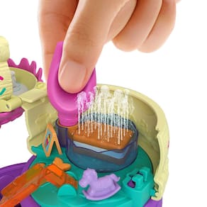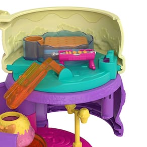 Prepare-se para a diversão com o tema parque de diversões e as bonecas Polly Pocket™. O Playground Super-Doce Spin ‘n Surprise™ tem a forma de um cone de sorvete e uma tampa que se abre, além de 3 níveis que giram para revelar 3 andares de diversão.