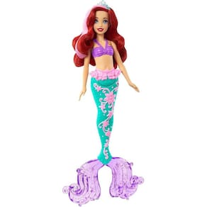 Ariel, a sereia favorita das crianças, inspirada na personagem de A Pequena Sereia da Disney, está pronta para dar um mergulho com diversão que muda de cor A boneca Color Splash Ariel tem recurso de mudança de cor ativado pela água no cabelo e na cauda. Usando o aplicador de esponja no estilo escova, as crianças podem fazer com que a magia da mudança de cor aconteça várias vezes A boneca não fica em pé sozinha. Características: Marca: Mattel Material: Plástico Idade: 3+ anos Inclui: 1 boneca de 28cm, 1 acessório e 1 aplicador de esponja. Imatgens Meramente Ilustrativas Certificação Inmetro: 005388/2021 Garantia: 3 meses defeito fabricação Ean: 194735120239
