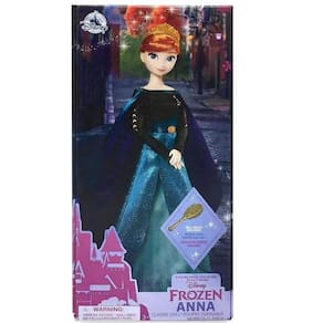 Boneca Princesa Disney Anna - Frozen2Anna Disney Classic Doll apresenta fantasia de luxo com saia superior brilhante, saia estampada listrada, mangas compridas com arte em tela rosemaling e cinto de cetim com brocheDetalhes adicionais incluem saia de baixo falsa costurada nas costuras laterais, capa de cetim e tiara douradaTotalmente articulável e vem com acessório de pincel de boneca; Apresenta embalagens sem plástico feitas de papel de origem sustentável que é 100% reciclável, reutilizável e mais fácil de abrir e impresso com tintas à base de sojaHomologação Inmetro: IP-BRI-0920/2021-03