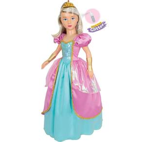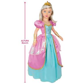 A magia está nos detalhes Com um visual encantador e clássico dos contos de fadas, a boneca possui 80cm de altura e cabeça, braços e pernas articulados. Acompanha uma linda coroa, um par de lindos sapatinhos e um majestoso vestido de princesa, repleto de brilho e detalhes encantadores. SURPRESA A boneca acompanha um Spray Glitter de Cabelo. Aplique no cabelo e veja a magia acontecer