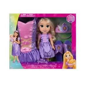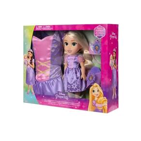 Compartilhe aventuras mágicas ao lado da boneca rapunzel, vestida em seu icônico vestido roxo, com longos cabelos e braços e pernas articulados.