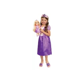 Entre na fantasia e vista-se como a sua princesa favorita, rapunzel, com o conjunto boneca rapunzel e vestido de princesa