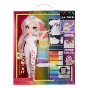 Inspira criatividade: com Color & Create, é muito fácil criar sua própria boneca Rainbow High personalizada. Com os marcadores laváveis arco-íris incluídos, você pode colorir o cabelo, colorir as roupas, colorir os sapatos e colorir o elástico. Você pode até criar designs personalizados fáceis corações, arco-íris, listras, o que quer que você possa imaginar. E o melhor de tudo, você pode fazer isso várias vezes. Basta enxaguar e repetir quantas vezes quiser. É tão fácil.