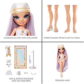 Rainbow high inspira criatividade: conheça os alunos da pacific coast high, a escola de artes plásticas mais elite da costa oeste. Aqui os dias são ensolarados e as aulas são à beira da piscina. Cada playset temático vem com roupa completa de boneca, acessórios imperdíveis para piscina, e um recurso bônus, pernas intercambiáveis.Características lindas: margot de perla está vestida em opal (branco iridescente) da cabeça aos dedos dos dedos. Ela tem características lindas e detalhadas em sua moda, lindos cabelos brancos e longos, cílios longos e olhos de vidro. Colete o arco-íris de todas as bonecas de moda do rainbow high.Recurso bônus: ela vem com um par de pernas intercambiáveis que quebram os joelhos e podem escorregar de sandálias para saltos instantaneamente. Agora margot está pronta para qualquer ocasião. Um passeio ao lado da costa arenosa até um smoothie no bar. (sapatos de salto alto não incluídos, mas todos os sapatos de salto alto rainbow high fashion boneca vai caber)Moda à beira da piscina margot é tudo sobre os detalhes, por isso o desenho de joias é natural para ela. Ela sempre eleva suas roupas com um toque desse brilho. Ela vem usando um maiô estampado de duas peças com papel alumínio iridescente e charme rainbow high moldado, envoltório removível com aplique de pérola, sandálias estampadas com salto de pérola, juntamente com todo o equipamento essencial da piscina.Pool/beach gear - margot é uma garota da costa oeste e está sempre pronta para se divertir sob o sol playset vem com toalha de pano de cozinha de praia coordenada, saco de balde de estampa jeans, lenço estampado charmeuse e óculos de sol para jogo imaginativo de contar histórias.Pose her no estande da boneca: ela está totalmente articulada e posable, seus braços e pernas se curvam para tantas poses glamourosas para que você possa exibi-la no estande de bonecas incluído.O que está incluído: boneca de moda, roupa de boneca completa, pernas intercambiáveis, par de sapatos de boneca e acessórios de boneca - bolsa de brinquedo, pente de boneca, óculos de sol, toalha, chapéu e uma barraca de boneca.Certificação Inmetro: Ce-Bri/INNAC-00128-04A NM 300/2002 OCP0061