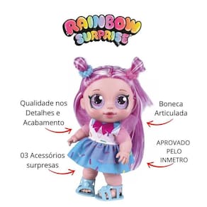 Com a Boneca Rainbow Surprise Cabelo Rosa 2707 Novo, as crianças poderão soltar a imaginação e se divertir muito. Ela é uma excelente opção de presente e vai encantar qualquer criança.