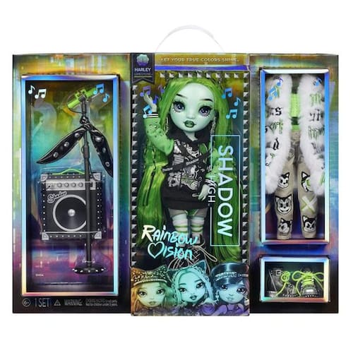 INSPIRE A IMAGINAÇÃO DAS CRIANÇAS: As melhores das melhores escolas de arte de todo o mundo competirão em uma competição de elite de música para escolas secundárias, a Rainbow Vision. Competidores de todo o mundo deixarão suas verdadeiras cores brilharem em uma batalha épica. A competição final para determinar o VENCEDOR! Rainbow High espera vencer pelo 8o ano consecutivo, mas Shadow High fará de tudo para garantir que sua banda, Neon Shadow, leve a vitória para casa.RECURSOS MARAVILHOSOS: Harley tem um design único e está vestida de verde neon e preto da cabeça aos pés. Ela tem traços lindos e detalhados em sua moda, lindos cabelos verdes lisos com duas tranças finas, tom de pele suave com detalhes em verde neon, longos cílios reais e olhos de vidro. Colete o arco-íris de todas as bonecas da moda Rainbow Vision- Neon Shadow.2 MIX & MATCH FASHION: Harley vem vestida com suéter felpudo gráfico, bermuda biker color block com estampas gráficas nas laterais, tênis cano alto com detalhes de cadarço e tiara com orelhas de gato. Ela também vem com uma segunda roupa completa para misturar e combinar diversão. Jaqueta de pelo sintético com detalhes em bordados sombreados, top verde neon com lantejoulas, jeans com grafismos estampados e bordados e coturno com tachas.NEON SHADOW ROCKBAND INTRUMENTS: Harley vem com todas as suas peças essenciais de rockstar, incluindo um microfone + suporte + lenço de microfone cravejado e conjunto de amplificador combinando com detalhes de pinos + cabo. Ela até o personalizou com um gráfico de sombra para combinar com sua roupa de performance. Este playset dará às crianças alegria sem fim e entretenimento imaginativo para contar histórias.POSICIONE-A NO SUPORTE DE BONECA: Ela é totalmente articulada e articulável, seus braços e pernas se dobram para tantas poses glamorosas ou você pode exibi-la no suporte de boneca incluído. Marca: Não Informado