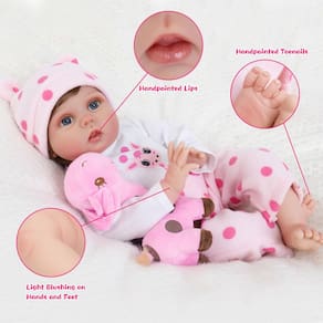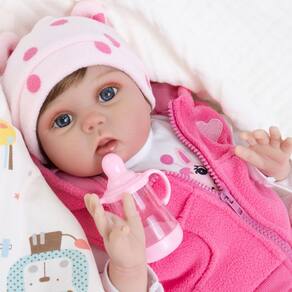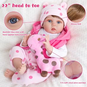 Aori 2.0 Conjunto de bonecas Reborn para meninas - 55 cm, realista, de vinil macio, para recém-nascidos, que parecem reais, o melhor brinquedo para crianças a partir de 3 anos - Boneca bebê realista Reborn: nossa boneca Aori 2.0 Reborn Baby Girl foi projetada para capturar a essência de um bebê real. Com suas características realistas, incluindo um rosto fofo, corpo abraçável pesado, dedos pequenos enrugados, olhos castanhos feitos à mão e cabelo preto encaracolado, esta boneca realmente se assemelha a uma criança de verdade. Cada detalhe, desde os lábios, unhas e unhas pintados à mão até os cílios implantados manualmente e o leve rubor nas bochechas, mãos e pés, contribuem para o seu realismo e adorabilidade - Detalhes realistas: Feito de vinil macio de alta qualidade e um corpo de tecido de algodão, nossa menina Reborn de 56 cm parece um bebê de verdade. A textura, linhas e vincos da pele da boneca são meticulosamente recriados para imitar a de um recém-nascido. Além disso, as mãos móveis permitem que você a posicione sentada ou deitada sem esforço. Você pode até vesti-la com roupas de tamanho normal de recém-nascido, melhorando a experiência realista. - Escolha perfeita para presente: nossa boneca Aori 2.0 Reborn é um presente ideal para aniversários, aniversários ou qualquer ocasião especial. Sua atenção aos detalhes e características realistas garantem que ela será uma companhia querida por muitos anos. Adequado para crianças a partir de 3 anos, esta boneca cria memórias duradouras e inspira brincadeiras imaginativas. Dê o presente de alegria e felicidade com nossa boneca bebê realista. - Conjunto completo de acessórios: o conjunto de bonecas Aori 2.0 Reborn inclui tudo o que seu filho precisa para cuidar da nova boneca. Vem com um conjunto de roupas, um amigo de pelúcia fofinho, um tapete, grampos de cabelo, uma mamadeira rosa e uma chupeta magnética. Com esses acessórios, seu filho pode se envolver em brincadeiras imaginativas, aprender sobre nutrir e desenvolver suas habilidades de cuidado enquanto se diverte. - Qualidade confiável: priorizamos a segurança e a satisfação de nossos clientes. Nossa boneca bebê reborn atende aos requisitos de segurança da ASTM F963 e EN71, proporcionando tranquilidade para os pais. Feita de materiais fáceis de limpar e amigáveis para a pele, nossa boneca é construída para suportar o teste do tempo, garantindo prazer duradouro para o seu pequeno. Confie na qualidade e artesanato de nossas bonecas reborn.