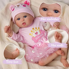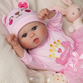 Bonecas JIZHI Reborn — Boneca realista e realista de 20 polegadas, vinil macio, bonecas recém-nascidas, menina com caixa de presente para crianças de 3 a 4 anos 6 7 8 9 ou mais — Cute Sweetie Baby: esta boneca renascida é uma coisinha fofa, com certeza. Cada pequena veia, ruga e cílio intensifica sua fofura, e acrescente um pequeno sorriso, bochechas rechonchudas e coxas rechonchudas, e ela será fácil de embrulhar e passar para aquela garotinha sortuda. Que linda boneca incrível... - Tão realista e posável: nossa boneca realista é tão adorável! Ela tem as bochechas dos cubículos! Sua cabeça, braços e pernas são de vinil macio, enquanto seu corpo é tecido pesado. Ela ainda tem um pequeno espólio!! Braços e pernas móveis e eles fazem um trabalho incrível nas características. Enrugamentos nas mãos e nos pés e até mesmo uma pequena veia ou duas. O cabelo dela está muito bem pintado. Seus olhos têm o tom mais bonito de azul - Boneca de corpo macio: nossa adorável roupa de princesa, roupa de boneca da vida real, roubará seu coração com seu corpo macio e fofinho. É como abraçar um bebê de verdade — sem as trocas de fraldas e as mamadas à meia-noite, é claro! O corpo quente e macio a torna perfeita para se aconchegar durante a soneca ou na hora de dormir, proporcionando conforto e companhia inigualáveis. As crianças querem brincar: esta bonequinha de verdade tem os traços faciais mais fofos e realmente parece uma boneca recém-nascida. Seu comprimento e peso são perfeitos para sua filha/neta segurar. Seus filhos podem mostrar seu “bebê novo” alegremente a todas as amigas - Maravilhoso conjunto de presentes: a linda boneca que parece real se encaixa perfeitamente em roupas de bebês recém-nascidos, e você só precisa mexer para colocá-las sobre as pernas dobradas. Ela está muito bem embalada, chegou com um vestido e chapéu rosa e também vem com vários acessórios: fralda, certidão de nascimento, mamadeira, chupeta magnética, chocalhos e uma pulseira hospitalar, ótima para colecionadores adultos e crianças, e fantástica por um preço razoável! É um presente maravilhoso