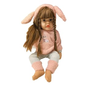 ???? Características: • Boneca realista com expressão serena e olhos brilhantes • Cabelos castanhos claros trançados com acabamento delicado • Roupa macia em tons pastéis, com suéter rosa e calça cinza • Touca com orelhinhas de coelho super fofa • Corpo em material resistente e agradável ao toque • Tamanho aproximado: 40cm Marca: Não Informado