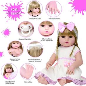Tags: Boneca, Bebe, Reborn, Realista, Menina, Infantil, Silicone, Princesa, Linda, Morena, Loira, Fofa, Banho, Enxoval, Completo, Grande, Baby Alive.