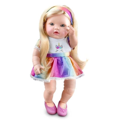 A Boneca Reborn Long Hair Unicórnio da marca Roma é feita de vinil de alta qualidade, com longos cabelos loiros e acessórios encantadores. Ideal para estimular a criatividade e a imaginação das crianças, esta boneca é uma verdadeira amiga que proporciona horas de diversão e cuidado. Com um design encantador, sua temática de unicórnio adiciona um toque especial às brincadeiras.