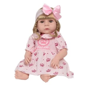 Boneca Reborn Menina Loira Realista Vestido Coroa 13 Itens