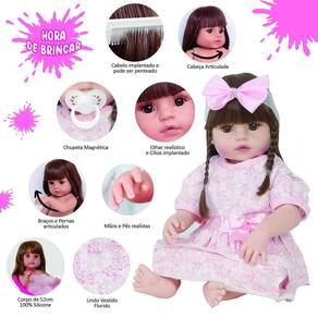 A nossa empresa tem a missão de garantir a total satisfação de seus clientes, onde a qualidade e o atendimento excepcional são nossa prioridade Estamos muito felizes em apresentar a Boneca Bebê Reborn para você, um item cuidadosamente selecionado para atender às suas necessidades. Compre agora e experimente a diferença em comprar com a nossa loja.A Boneca Bebê Reborn é o sonho das meninas Produzida 100% em vinil siliconado, essa boneca pode sentar, deitar e fazer tudo que a sua imaginação deixar. Com seus olhos castanhos e detalhes realistas ela é encantadora e apaixonante. Sua criança merece a melhor qualidade de bebê reborn Marca: Cegonha Reborn DollsModelo: Boneca Bebê RebornCor: BegeMaterial: Vinil Siliconado AtóxicoCaracterísticas Principais: Membros Articulados, Corpo de Silicone, Detalhes Realistas.Medidas Aprox.: Altura da Boneca: 52cm Peso Aprox. Da Boneca: 0,745 Kg Certificado INMETRO Recomendado para crianças maiores de 03 anosConteúdo:1 Bebê Reborn Cabeça, Membros e Corpo de Vinil 1 Vestido1 Par de Cílios1 Par de Brinco1 Chupeta1 Mamadeira Simples5 Certificados2 Fraldas1 Laço CetimGarantia30 dias de garantia oferecida pelo fabricante.Dúvidas Frequentes:1. Ela acompanha ItensR. Sim, todos os itens da descrição.2. Ela emite algum somR. Não, ela não emite nenhum som.3. Pode dar banho na bonecaR. Sim, pois o material do corpo é de Silicone.4. Pode escolher a cor dos olhos da bonecaR. Não, os olhos já vêm de fábrica.Tags: Boneca, Bebe, Reborn, Realista, Menina, Infantil, Silicone, Bailarina, Princesa, Linda, Fofa, Banho, Enxoval, Completo, Grande, Baby Alive.Homologação Inmetro: IP-BRI-2749/2021-01