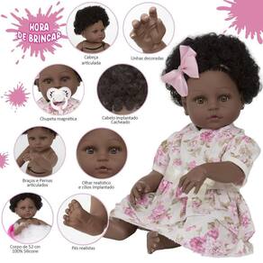 A nossa empresa tem a missão de garantir a total satisfação de seus clientes, onde a qualidade e o atendimento excepcional são nossa prioridade Estamos muito felizes em apresentar a Boneca Bebê Reborn para você, um item cuidadosamente selecionado para atender às suas necessidades. Compre agora e experimente a diferença em comprar com a nossa loja.A Boneca Bebê Reborn é o sonho das meninas Produzida 100% em vinil siliconado, essa boneca pode sentar, deitar e fazer tudo que a sua imaginação deixar. Com seus olhos castanhos e detalhes realistas ela é encantadora e apaixonante. Sua criança merece a melhor qualidade de bebê reborn Marca: Cegonha Reborn DollsModelo: Boneca Bebê RebornCor: MarromMaterial: Vinil Siliconado AtóxicoCaracterísticas Principais: Membros Articulados, Corpo de Silicone, Detalhes Realistas.Medidas Aprox.: Altura da Boneca: 52cm Peso Aprox. Da Boneca: 0,745 Kg Certificado INMETRO Recomendado para crianças maiores de 03 anosConteúdo:1 Bebê Reborn Cabeça, Membros e Corpo de Vinil 1 Vestido1 Par de Cílios1 Par de Brinco1 Chupeta 1 Mamadeira Simples5 Certificados3 Fraldas1 Laço Cetim2 Presilhinha1 Par de Luvas1 Bolsa Maternidade1 Prendedor de ChupetaKit Pente e Escova SimplesGarantia30 dias de garantia oferecida pelo fabricante.Dúvidas Frequentes:1. Ela acompanha ItensR. Sim, todos os itens da descrição.2. Ela emite algum somR. Não, ela não emite nenhum som.3. Pode dar banho na bonecaR. Sim, pois o material do corpo é de Silicone.4. Pode escolher a cor dos olhos da bonecaR. Não, os olhos já vêm de fábrica.Tags: Boneca, Bebe, Reborn, Realista, Menina, Infantil, Silicone, Princesa, Linda, Morena, Loira, Fofa, Banho, Enxoval, Completo, Grande, Baby Alive.Homologação Inmetro: IP-BRI-0261/2022-05