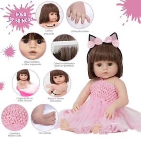A nossa empresa tem a missão de garantir a total satisfação de seus clientes, onde a qualidade e o atendimento excepcional são nossa prioridade Estamos muito felizes em apresentar a Boneca Bebê Reborn Bailarina para você, um item cuidadosamente selecionado para atender às suas necessidades. Compre agora e experimente a diferença em comprar com a nossa loja.A Boneca Bebê Reborn Bailarina é o sonho das meninas Produzida 100% em vinil siliconado, essa boneca pode sentar, deitar e fazer tudo que a sua imaginação deixar. Com seus olhos castanhos e detalhes realistas ela é encantadora e apaixonante. Sua criança merece a melhor qualidade de bebê reborn Marca: Cegonha Reborn DollsModelo: Boneca Bebê Reborn BailarinaCor: BegeMaterial: Vinil Siliconado AtóxicoCaracterísticas Principais: Membros Articulados, Corpo de Silicone, Detalhes Realistas.Medidas Aprox.: Altura da Boneca: 46cm Peso Aprox. Da Boneca: 0,745 Kg Certificado INMETRO Recomendado para crianças maiores de 03 anosConteúdo:1 Bebê Reborn Cabeça, Membros e Corpo de Vinil 1 Conjunto de Roupa Bailarina1 Par de Cílios5 Certificados1 Fralda1 PelúciaGarantia30 dias de garantia oferecida pelo fabricante.Dúvidas Frequentes:1. Ela acompanha ItensR. Sim, todos os itens da descrição.2. Ela emite algum somR. Não, ela não emite nenhum som.3. Pode dar banho na bonecaR. Sim, pois o material do corpo é de Silicone.4. Pode escolher a cor dos olhos da bonecaR. Não, os olhos já vêm de fábrica.Tags: Realista, Menina, Infantil, Silicone, Princesa, Linda, Morena, Loira, Fofa, Banho, Enxoval, Completo, Grande, Baby Alive.Homologação Inmetro: IP-BRI-0261/2022-05