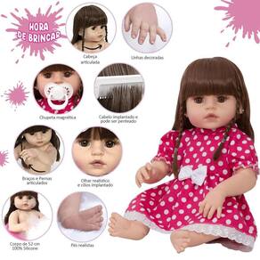Tags: Boneca, Bebe, Reborn, Realista, Menina, Infantil, Silicone, Princesa, Linda, Morena, Loira, Fofa, Banho, Enxoval, Completo, Grande, Baby Alive.
