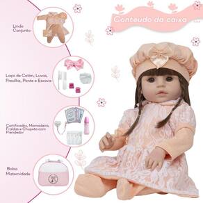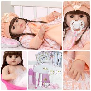 A Boneca Bebê Reborn é o sonho das crianças Produzida 100% em vinil siliconado, essa boneca pode sentar, deitar e fazer tudo que a sua imaginação deixar. Com seus olhos castanhos e detalhes realistas ela é encantadora e apaixonante. Sua criança merece a melhor qualidade de bebê reborn