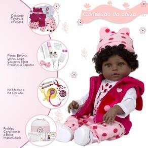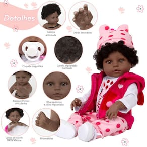 A nossa empresa tem a missão de garantir a total satisfação de seus clientes, onde a qualidade e o atendimento excepcional são nossa prioridade Estamos muito felizes em apresentar a Boneca Bebê Reborn Girafinha para você, um item cuidadosamente selecionado para atender às suas necessidades. Compre agora e experimente a diferença em comprar com a nossa loja.A Boneca Bebê Reborn Girafinha é o sonho das crianças Produzida 100% em vinil siliconado, essa boneca pode sentar, deitar e fazer tudo que a sua imaginação deixar. Com seus olhos castanhos e detalhes realistas ela é encantadora e apaixonante. Sua criança merece a melhor qualidade de bebê reborn Marca: Cegonha Reborn DollsModelo: Boneca Bebê Reborn GirafinhaCor: MarromMaterial: Vinil Siliconado AtóxicoCaracterísticas Principais: Membros Articulados, Corpo de Silicone, Detalhes Realistas.Medidas Aprox.: Altura da Boneca: 46cm Peso Aprox. Da Boneca: 0,745 Kg Certificado INMETRO Recomendado para crianças maiores de 03 anosConteúdo:1 Bebê Reborn Cabeça, Membros e Corpo de Vinil 1 Conjunto Roupa Girafinha1 Par de Cílios1 Par de Brinco1 Chupeta com Artesanato1 Mamadeira Luxo5 Certificados3 Fraldas1 Laço Cetim2 Presilhinha1 Par de Luvas1 Bolsa Maternidade1 Prendedor de ChupetaKit Pente e Escova com Artesanato1 Kit medico1 Kit Panelinha1 Pelúcia1 Par de SapatinhosGarantia30 dias de garantia oferecida pelo fabricante.Dúvidas Frequentes:1. Ela acompanha ItensR. Sim, todos os itens da descrição.2. Ela emite algum somR. Não, ela não emite nenhum som.3. Pode dar banho na bonecaR. Sim, pois o material do corpo é de Silicone.4. Pode escolher a cor dos olhos da bonecaR. Não, os olhos já vêm de fábrica.Tags: Realista, Menina, Infantil, Silicone, Princesa, Linda, Morena, Loira, Fofa, Banho, Enxoval, Completo, Grande, Baby Alive.Homologação Inmetro: IP-BRI-0406/2022-07