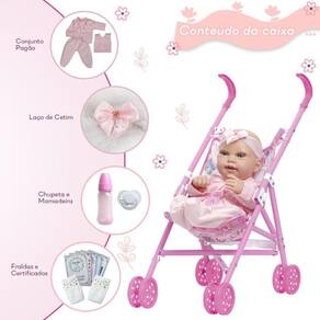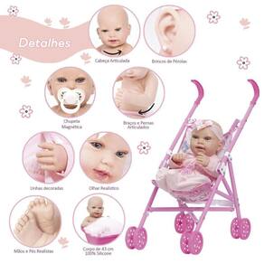 A nossa empresa tem a missão de garantir a total satisfação de seus clientes, onde a qualidade e o atendimento excepcional são nossa prioridade Estamos muito felizes em apresentar a Boneca Bebê Reborn para você, um item cuidadosamente selecionado para atender às suas necessidades. Compre agora e experimente a diferença em comprar com a nossa loja.A Boneca Bebê Reborn é o sonho das meninas Produzida 100% em vinil siliconado, essa boneca pode fazer tudo que a sua imaginação deixar. Com seus olhos claros e detalhes realistas ela é encantadora e apaixonante. Acompanha um lindo carrinho para poder passear com o bebê. Sua criança merece a melhor qualidade de bebê reborn Marca: Cegonha Reborn DollsModelo: Boneca Bebê Reborn Cor: BegeMaterial: Vinil Siliconado AtóxicoCaracterísticas Principais: Membros Articulados, Corpo de Silicone, Detalhes Realistas.Medidas Aprox.: Altura da Boneca: 43cm Peso Aprox. Da Boneca: 0,745 Kg Certificado INMETRO Recomendado para crianças maiores de 03 anosConteúdo:1 Bebê Reborn Cabeça, Membros e Corpo de Vinil 1 Conjunto Pagão 1 Par de Cílios1 Par de Brinco1 Chupeta1 Mamadeira Simples5 Certificados2 Fraldas1 Laço Cetim1 Carrinho InfantilGarantia30 dias de garantia oferecida pelo fabricante.Dúvidas Frequentes:1. Ela acompanha ItensR. Sim, todos os itens da descrição.2. Ela emite algum somR. Não, ela não emite nenhum som.3. Pode dar banho na bonecaR. Sim, pois o material do corpo é de Silicone.4. Pode escolher a cor dos olhos da bonecaR. Não, os olhos já vêm de fábrica.Tags: Realista, Menina, Infantil, Silicone, Princesa, Linda, Morena, Loira, Fofa, Banho, Enxoval, Completo, Grande, Baby Alive.Homologação Inmetro: IP-BRI-0261/2022-05