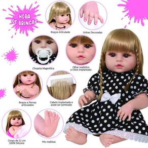 Tags: Realista, Menina, Infantil, Silicone, Princesa, Linda, Morena, Loira, Fofa, Banho, Enxoval, Completo, Grande, Baby Alive.