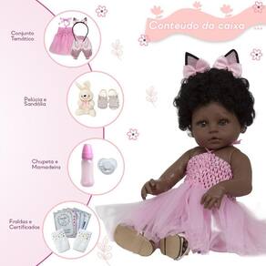 Boneca Reborn Realista Negra Bailarina Coelhinha Kit Itens