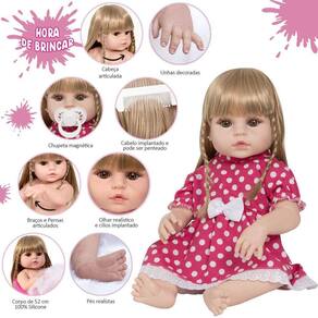 Tags: Realista, Menina, Infantil, Silicone, Princesa, Linda, Morena, Loira, Fofa, Banho, Enxoval, Completo, Grande, Baby Alive.