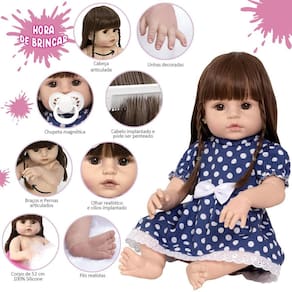 Tags: Boneca, Bebe, Reborn, Realista, Menina, Infantil, Silicone, Princesa, Linda, Morena, Loira, Fofa, Banho, Enxoval, Completo, Grande, Baby Alive.
