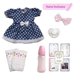 A Boneca Bebê Reborn é o sonho das meninas Produzida 100% em vinil siliconado, essa boneca pode sentar, deitar e fazer tudo que a sua imaginação deixar. Com seus olhos castanhos e detalhes realistas ela é encantadora e apaixonante. Sua criança merece a melhor qualidade de bebê reborn