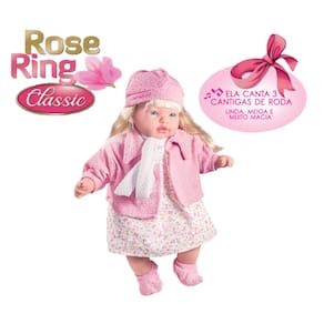 BONECA BEBE ROSE RING CLASSIC CANTIGA DE RODAS A Bebezinha mais fofa chegou para deixar suas brincadeiras ainda mais divertidas! A Boneca Bebê Rose Ring Classic é cheia de detalhes que vão encantar você, ela canta 3 cantigas de roda, seu corpinho é todo macio, as mãozinhas e pezinhos são com dobrinhas e furinhos como um bebezinho, Acompanha gorrinho, meinha e a roupinha é toda decorada. Tudo isso para você se divertir, sendo mamãe. Divirta-se em qualquer lugar com sua bebezinha Rose Ring Classic! *BENEFICIOS: Estimula a interação entre pais e filhos, estimula a criatividade, é sensorial, estimula a imaginação, desenvolve a fala, a comunicação, a afetividade, a coordenação motora, o reconhecimento de formas e cores, a interação social e cultural, brincando, desenvolve-se a criança num todo! *INFORMAÇOES TECNICAS: Idade Mínima Recomendada: + 3 anos Dimensões Aproximadas da Embalagem (AxLxC): 33cm x 26cm x 46cm Dimensões Aproximadas da Boneca: 40cm altura Material Composição: Corpo enchimento / Cabeça Braços e Pernas Vinil Abre/Fecha olho: Não Articulada: Não Pode Molhar: Não Som: Sim, 3 cantigas de roda Pilha/Bateria: 3 AG13/LR44 Luz: Não Fabricante: Milk Brinquedos INMETRO REGISTRO 001524/2019 Conteúdo da Embalagem: 01 Boneca