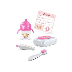 Contém: 1 mamadeira mágica, 1 escova de dente, 1 tubo de pasta, 1 porta lenços (lenços não acompanham o produto), 1 naninha, 1 chupeta, 1 fralda e 1 certidão de nascimento.