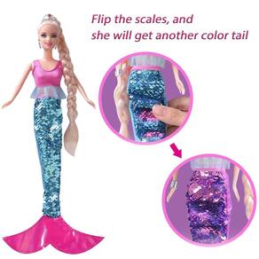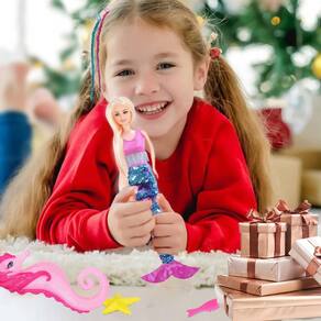 ? Boneca de 29 cm: As roupas da boneca princesa sereia podem ser retiradas. Pode ser substituído por outras roupas de boneca de 29 cm. O cabelo longo da boneca permite que as meninas usem sua imaginação e criem uma variedade de penteados para a boneca. O acessório de escova de cabelo em forma de peixe também pode ser utilizado para pentear o cabelo da boneca. ? Especificações: Idade recomendada: 3 anos ou mais Material: plástico Conteúdo da embalagem: 1 boneca princesa sereia BETTINA 1 brinquedo hipocampo rosa 1 x escova de cabelo de peixe. 1 escova de cabelo estrela do mar. - Boneca sereia que muda de cor: a cauda do brinquedo de sereia muda de cor de rosa para azul quando as escalas são invertidas - Bonecas de princesa de 29 cm: a boneca sereia possui um lindo cabelo trançado que as crianças podem estilizar e trançar em outros penteados divertidos, incentivando a criatividade e a imaginação. - Incluído na embalagem: o conjunto de boneca sereia BETTINA inclui boneca de 28 cm com coroa, brincos, cavalo-marinho rosa, escova de cabelo de estrela do mar e brinquedo de escova de cabelo em forma de peixe - Seguro e aprovado para crianças: Feito com materiais não prejudiciais, esta é uma escolha aprovada pela mamãe para brinquedos infantis. Bonecas de sereia perfeitas para meninas de 4 a 7 anos - Cores vibrantes: as cores vibrantes dos brinquedos de sereia podem atrair a atenção das crianças e mantê-las ocupadas por horas