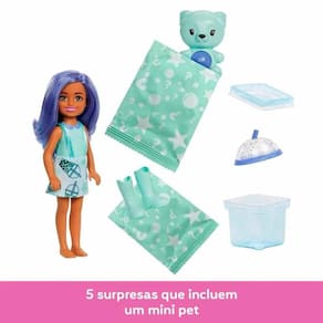Boneca Surpresa - Barbie Chelsea Pop Reveal - Chá - Mattel: Barbie Chelsea Pop Reveal oferece uma experiência cheia de surpresas incríveis ao abrir embalagem. Com 5 surpresas sensoriais, que combinam com o tema chá de bolhas, para descobrir e brincar de montão. Qual boneca você encontrará? Muitas surpresas para encantar: • Abra a embalagem inspirada em uma lata de chá para revelar uma pequena boneca Chelsea com aroma de chá de bolhas. Qual boneca você vai descobrir? • São quatro diferentes, cada uma com um cheiro único: leite de inhame, frutas vermelhas, chá verde ou mochi de manga • Continue abrindo e descobrindo os pacotes misteriosos e o cubo de gelo com uma surpresa dentro • Abra para revelar um par de sapatos! O cubo de gelo é reutilizável. Repita a diversão de descobrir a peça interna o quanto quiser • Os pacotes misteriosos contêm um vestido, um animal de estimação e um chapéu temático do conjunto que pode ser colocado na cabeça do animal. • Continue descobrindo surpresas com as transformações de mudança de cor que ocorrem no rosto da boneca Chelsea. Informações: • Produto: Boneca Barbie Chelsea Pop Reveal • Marca: Mattel • Coleção: Barbie Chelsea • Linha: Barbie Chelsea Pop Reveal • Serie: Chá de Bolhas • Tipo: Boneca e Acessórios Surpresa • Categoria: Bonecas e Cia • Subcategoria: Mini Boneca • Tamanho (C x A x L): 04 x 13.2 x 2.5 cm • Conteúdo: - 01 mini boneca perfumada Chelsea - 01 animal de estimação perfumado - 01 vestido - 01 par de sapatos • Recomendação: para crianças a partir de 03 anos de idade Especificações: • Modelo: Barbie Chelsea Pop Reveal Serie Chá • Referência: HRK63 / JCX93 • Código de Barras: 194735151196 • Embalagem (C x A x L): 8.9 x 16.2 x 8.4 cm • Embalagem (Peso): 0.079 kg • Material / Composição: Plástico • Registro: 005012/2023 • Certificado: Órgãos Autorizados - OCP ´S (Organismos de Certificação de Produtos) Aviso: • As imagens são meramente ilustrativas • Os pesos, tamanhos e medidas são aproximados • As cores e estampas dos produtos podem ter variações • As informações são de responsabilidade do fabricante ou fornecedor