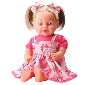 A Boneca Talk Baby da Bee Toys é perfeita para encantar as crianças com sua aparência delicada e realista. Com cabelos loiros macios e penteáveis, ela vem vestida com um lindo vestido rosa cheio de charme, que completa seu visual adorável.