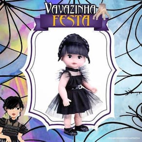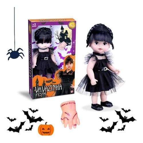 Inspirada na Série Wandinha, essa boneca veio para tornar suas brincadeiras ainda mais divertidas. Imitando com ricos detalhes da personagem Wandinha Adams, com franjinha e seu novo vestido de festa, novo penteado e sapatinhos pretos, traz todo encanto e diversão. Além disso, vêm acompanhada de sua amiga inseparável, a Mãozinha , feitos em vinil macio, deixando a brincadeira ainda mais completa.