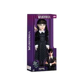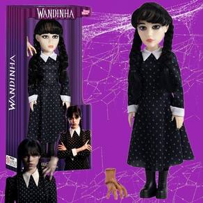 Inspirada na personagem Wandinha, a Boneca com 42cm possui visual clássico e inteiramente pensado na inteligente, sarcástica e apática menina Addams. Seu visual é composto por um vestido preto de manga longa com com gola e mangas na cor branca, um par de botas e meia calça preta, além de possuir tranças no cabelo e articulação nas mãos, pernas e cabeça. Acompanha figura da mãozinha