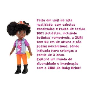 -representatividade Importante: Zuri traz consigo a representatividade cultural, sendo uma boneca que celebra a diversidade e a beleza dos diferentes tipos de cabelo.