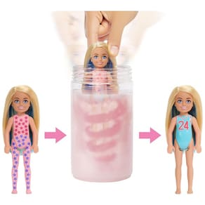 Com 6 surpresas em 1 pacote, as bonecas Barbie Chelsea Color Reveal oferecem todo tipo de prazer as crianças se divertem revelando a Sporty Series com a Color Reveal Innovation Comece removendo a camada externa da embalagem, abrindo o tubo e retirando uma misteriosa boneca Chelsea e 3 sacolas decoradas com conteúdo oculto Encha o tubo com água morna, coloque a boneca cujo visual está coberto por uma estampa de estrela Color Reveal dentro e agite a água fica rosa para um efeito mágico Retire a boneca para revelar a aparência cada boneca do Chelsea tem cabelos compridos com uma faixa de cor e um número de time de esportes em seu corpete Abra as 3 sacolas misteriosas para revelar suas surpresas há uma saia, um par de tênis, chapéu e bolsa guarde os no tubo depois de brincar Use água gelada e quente para uma transformação de mudança de cor que pode ser repetida repetidamente transforme a faixa de cabelo da boneca por um momento de uau Faz um ótimo presente para crianças de 3 anos ou mais, que podem colecioná las para misturar e combinar acessórios e expandir as oportunidades de tempo de reprodução
