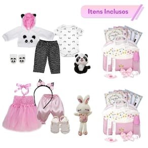 Bonecas bebê reborn gêmeas - 2 bebê reborn realista menina pandinha coelhinha 43 itens