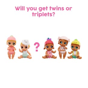 Baby Born Surprise Mini Babies Série 9 - Desembrulhe gêmeos ou trigêmeos surpresa, bonecas colecionáveis com tema de comida e atividade, inclui faixa macia, brinquedo de puxar pato, para crianças a