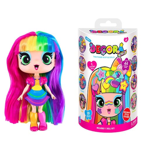 Decora Girlz Bonecas colecionáveis de 12,7 cm, 8 surpresas para unbox, roupas divertidas e adesivos, 9 para colecionar - Entre no estilo e deixe a Decora Girlz redefinir o seu mundo. A variedade Decora Girlz pode incluir os seguintes personagens da edição 1 Decora Girlz, cada um com seu próprio tema para decorar: Decora (arco-íris e corações), Blossom (Morangos e flores), Kat (gatinhos e pegadas de patas), Heather (flores), Londres (modificação dos anos 1960), Buzzy (abelhas e joaninhas), Sweetie (balas de centavo), Celestia (planetas e estrelas ), Luna (crânios góticos e arcos). - Adesivo, estilo, brilho! Cada boneca Decora Girlz de 12,7 cm é uma tela para sua criatividade. Enfeite com adesivos em abundância e veja sua visão ganhar vida! Estas bonecas não são apenas tendências; elas são criadoras de tendências, e você é o artista. - Crie, personalize e celebre! Com nove personagens únicos, o mundo Decora Girlz é seu para governar. Misture, combine e transforme roupas, troque adesivos e deixe sua imaginação quebrar todos os limites! - Qualidade que se destaca! Cada boneca Decora Girlz é articulada e dinâmica com estilos de vinil macios fáceis de vestir e cabelos maravilhosamente enraizados em cores fantasticamente criativas. - Cabelo enraizado para o melhor jogo! Estilize o cabelo, adicione adesivos e exiba seu estilo. O cabelo vibrante e colorido de cada boneca é uma tela perfeita para o seu toque único. - Oito surpresas esperam! Sua aventura de unboxing revela oito surpresas encantadoras, garantindo que cada momento seja preenchido com expectativa e emoção. Quais tesouros você encontrará? - Folhas de adesivos – inchadas, planas e fabulosas! - Roupa de vinil macio – adornado com os mais recentes designs da tendência Decora! - Sapatos modernos – para pés modernos - Acessórios fofos – Mini mochilas e capas de telefone para todas as ocasiões!