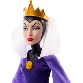- Com sua coroa dourada e seu vestido roxo exclusivo com gola branca, a boneca Rainha Má parece elegante e feroz — e ela fará de tudo para deter a Branca de Neve.