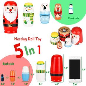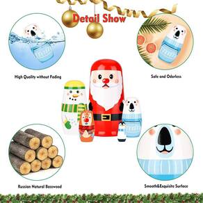 ?Brinquedos engraçados e surpreendentes?: Estas bonecas de nidificação para crianças podem ser empilhadas juntas, parecendo uma boneca grande. É como uma caixa de presente. Quando você abri-lo, você pode encontrar surpresas desconhecidas. Depois de serem desmontados, há cinco bonecos de diferentes tamanhos, ou seja, claus, um boneco de neve, um cachorro, um urso e um pinguim
