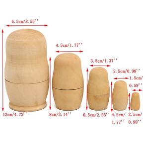 Material: madeira de tília Cor: creme Tamanho do produto: 2,5-12 cm Peso do produto: 0,2 kg Tamanho da embalagem: 15 x 8 x 8 cm Peso da embalagem: 0,25 kg Lista de embalagem: 5 x bonecas de nidificação Este conjunto de 5 camadas de bonecos de nidificação russos sem pintura fornece uma tela perfeita para projetos de bricolage. As superfícies lisas e inacabadas de madeira de tília são ideais para pintura à mão, oferecendo infinitas possibilidades de personalização para artistas de todas as idades. Seja você um iniciante ou um artista experiente, este conjunto permite liberdade criativa ao criar suas próprias bonecas coloridas e personalizadas. É perfeito para projetos escolares, decorações de casa ou como um presente atencioso para amantes de artesanato. Ideal para crianças e adultos, este conjunto sem pintura promove a criatividade e as habilidades motoras finas, tornando-o uma ferramenta educacional para o aprendizado prático. As crianças se divertirão enquanto praticam suas habilidades de pintura e exploram suas habilidades artísticas. Feitas de madeira de tília de alta qualidade, essas bonecas de nidificação são duráveis e fáceis de pintar. O conjunto inclui 5 bonecos de nidificação que variam de 2,5 cm a 12 cm, perfeitos para um projeto de arte divertido e interativo ou uma peça de exibição exclusiva. Este kit de bricolage é uma ótima maneira de passar bons momentos com a família e amigos enquanto cria seu próprio conjunto de lindas bonecas de nidificação. Também serve como um presente memorável e personalizável para aniversários, feriados ou ocasiões especiais.