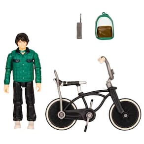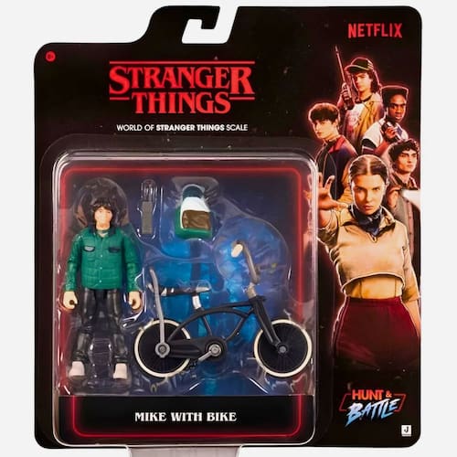 Personagens: Mike Wheeler e Will Byers Altura aproximada: 10 cm cada boneco Mais de 15 pontos de articulação Bicicletas funcionais inclusas Compatível com outras figuras da linha Stranger Things Detalhes fiéis à 1ª temporada Produto ideal para colecionadores e fãs