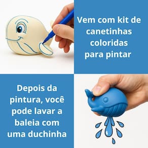 Boneco Baleia Pintura Aqua Art Com Canetinhas e Duchinha Diversão criativa e sem sujeira Este kit incrível permite que as crianças pintem, brinquem e lavem, tudo de forma prática e reutilizável. Por que escolher este brinquedo - Pintura mágica sem bagunça - As canetinhas só funcionam na superfície da baleia, sem riscar outros objetos. - Reutilizável - Depois de pintar, é só lavar com a duchinha e começar de novo - Desenvolve a coordenação motora - Perfeito para estimular a criatividade e habilidades artísticas. - Kit completo - Inclui 1 baleia para pintar, 6 canetinhas coloridas e 1 duchinha temática. Características do produto: - Conteúdo: 1 baleia para colorir + 1 duchinha + 6 canetinhas hidrográficas - Material da baleia: Plástico macio e lavável - Tintas atóxicas e laváveis - Seguro para crianças - Idade recomendada: A partir de 3 anos - Estimula: Imaginação, coordenação e expressão artística 1. A tinta sai na roupa ou na pele - Não As canetinhas são especiais e só marcam na superfície da baleia, facilitando a limpeza. 2. Precisa de água para funcionar - Não, as canetinhas pintam sozinhas, mas a duchinha é para lavar e reiniciar a brincadeira. 3. Pode ser na banheira - Sim A baleia é perfeita para brincar na água após a pintura. Presente educativo que une arte e brincadeira, ideal para viagens ou dias em casa Homologação Inmetro: CE-BRI/IQB 002276 53551/20-004 Marca: Não Informado Ean: 7898644472702